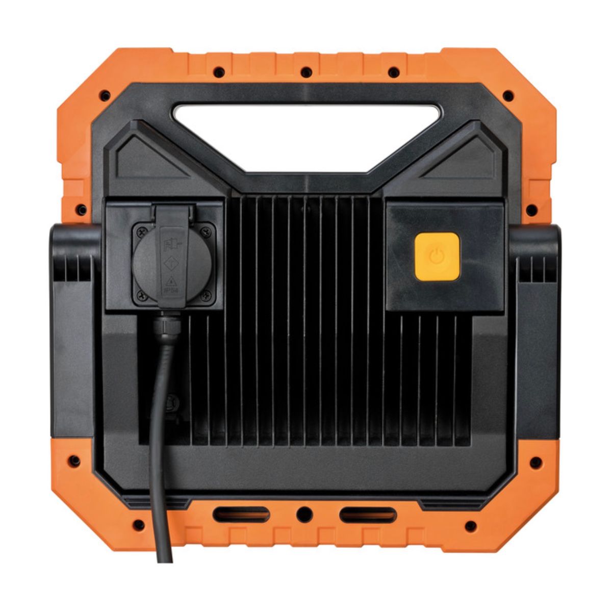 Le projecteur LED mobile X 8000 M est un projecteur de travail à LED extrêmement robuste d'une puissance de 80 watts qui répond aux exigences les plus élevées. Doté d'une protection supplémentaire des bords en plastique de haute qualité, il convient aussi bien à une utilisation intérieure qu'extérieure. Il est équipé d'un support de maintien rabattable et réglable pour l'installation ou la fixation sur des trépieds Brennstuhl. Le projecteur de travail avec interrupteur marche/arrêt permet un éclairage spécifique à l'utilisateur avec une fonction de gradation continue de 10 à 100 pour cent. Les LED intégrées impressionnent par leur durée de vie exceptionnellement longue et leur répartition lumineuse spéciale pour l'éclairage de grandes surfaces. Le projecteur de chantier à LED impressionne par ses 8 300 lumens dans toutes les conditions d'éclairage. Le câble RN résistant à l'huile de cinq mètres de long permet une très bonne liberté de mouvement. De plus, une prise anti-éclaboussures est installée à l'arrière, ce qui évite les enroulements de câbles gênants et permet un travail plus efficace. Le X 8000 M est certifié avec un niveau de résistance aux chocs de IK07, ce qui correspond à une énergie d'impact de 2,0 joules. Brennenstuhl est synonyme de travail de qualité, les produits de l'entreprise se distinguent des autres produits fabriqués en série.