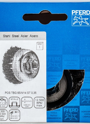 - 1x brosse boisseau PFERD Ø 65 mm M14 épaisseur de fil 0,35 mm