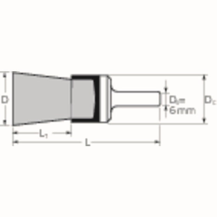 pour les travaux de brossage légers tels que l'ébavurage, le nettoyage et le dérouillage - le matériau de garnissage, le fil d'acier, dispose d'une grande résistance à la traction et à la flexion alternée - garantit une usure optimale du fil ainsi qu'une durée de vie élevée, même dans les applications de brossage extrêmes. Le fil d'acier résiste à des températures allant jusqu'à 300 °C. Ø de la tige 6 mm