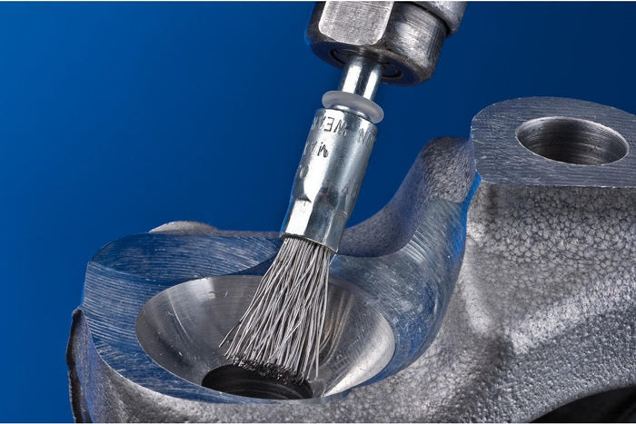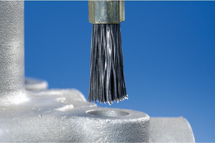- Avantages : Produit des surfaces fines. Longue durée de vie grâce à l'utilisation de fil spécial PFERD. Atteinte optimale des endroits difficiles d'accès comme les alésages et les cavités grâce à l'écartement de la garniture lors de la rotation.
