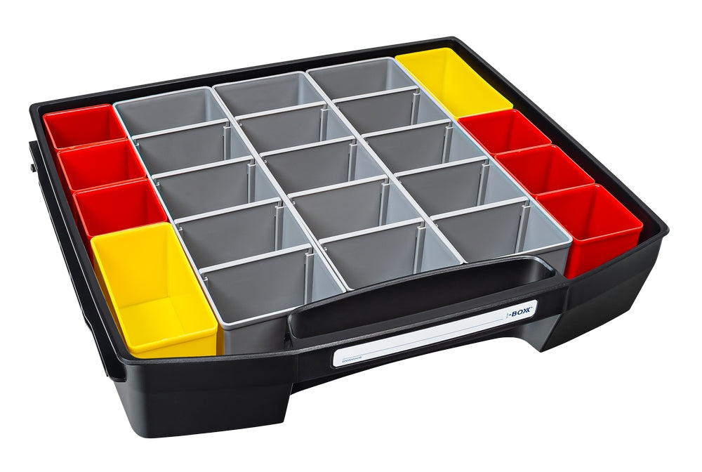 Avec le set Insetbox I3 iB 72, vous gardez vos petites pièces parfaitement rangées et toujours sous les yeux. Que vous l'utilisiez dans votre atelier ou en combinaison avec le système L-BOXX ou ProClick, les Insetbox peuvent être utilisées partout en toute sécurité. Elles sont élégantes et permettent de garder vos petites pièces bien organisées. Le kit comprend différentes tailles de boîtes à encastrer, ce qui vous permet de disposer d'un rangement adapté à chaque type de petites pièces.