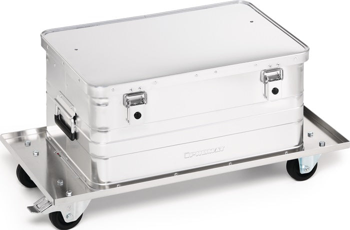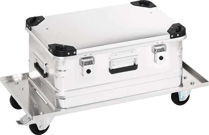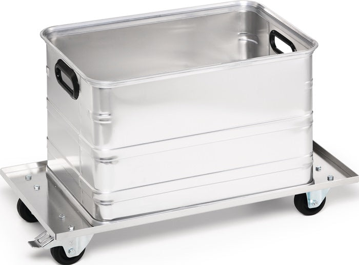 Charge max. 50 kg - galvanisé - 2 roues pivotantes et 2 fixes, 1 roue pivotante avec frein - bandage caoutchouc, roue Ø 80 x 25 mm - pour conteneur aluminium de 29 l à 90/91 l et conteneur aluminium de 28 l à 80 l