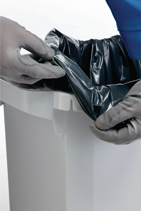 Contenu 60 l - en polypropylène recyclé (PP) - avec poignées robustes - cavités de maintien sur la face inférieure pour un vidage sûr - fentes de serrage pour sacs poubelle incluses