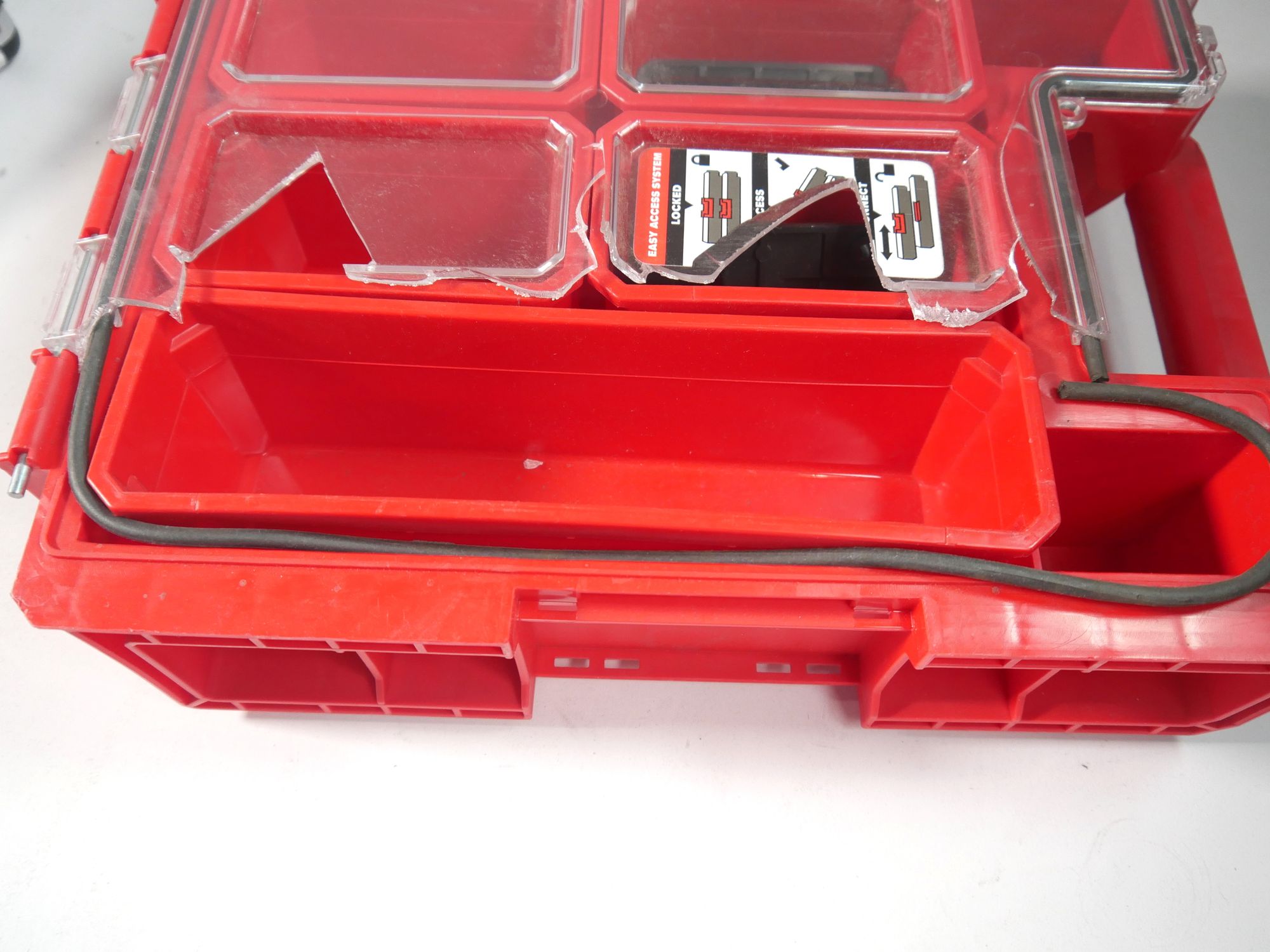 RED ULTRA HD est une édition spéciale de produits Qbrick System ONE en plastique ultra-résistant, qui se caractérise par une résistance exceptionnelle aux dommages mécaniques. Les tests d'impact effectués confirment sa durabilité exceptionnelle, même dans des conditions inférieures à 0 C. Qbrick System ONE Organizer M Plus est un modèle supérieur de l'organiseur M de la gamme d'organiseurs modulaires ONE, qui peuvent être combinés dans de nombreuses configurations. L'Organizer M Plus est doté du système breveté Easy Access qui, grâce à des éléments de connexion spéciaux, permet d'accéder facilement à chaque module sans avoir à le détacher, ce qui améliore considérablement l'ergonomie de travail. L'Organizer M Plus est équipé en standard de 5 seaux pour les accessoires, dont 4 petits et un long pour le rangement et le transport des éléments de votre atelier. En outre, le contenu de l'organiseur est protégé contre la pénétration d'eau et de poussière par un joint flexible placé dans le couvercle en polycarbonate. Une serrure spéciale pour le couvercle de l'organiseur empêche toute chute incontrôlée.