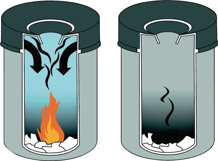 auto-extinguible · en métal · corps et tête d'extinction avec revêtement en résine époxy résistant aux rayures · la tête d'extinction de flamme interrompt l'alimentation en oxygène et étouffe la flamme