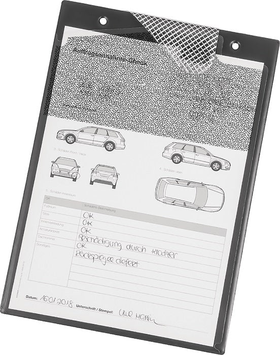 DIN A4 - modèle extra-robuste avec fermeture velcro - face avant avec compartiment pour clés et impression spéciale contre la lisibilité (répond aux directives du règlement général sur la protection des données RGPD) - face arrière avec compartiment pour documents en film renforcé par un tissu UE = 10 pièces