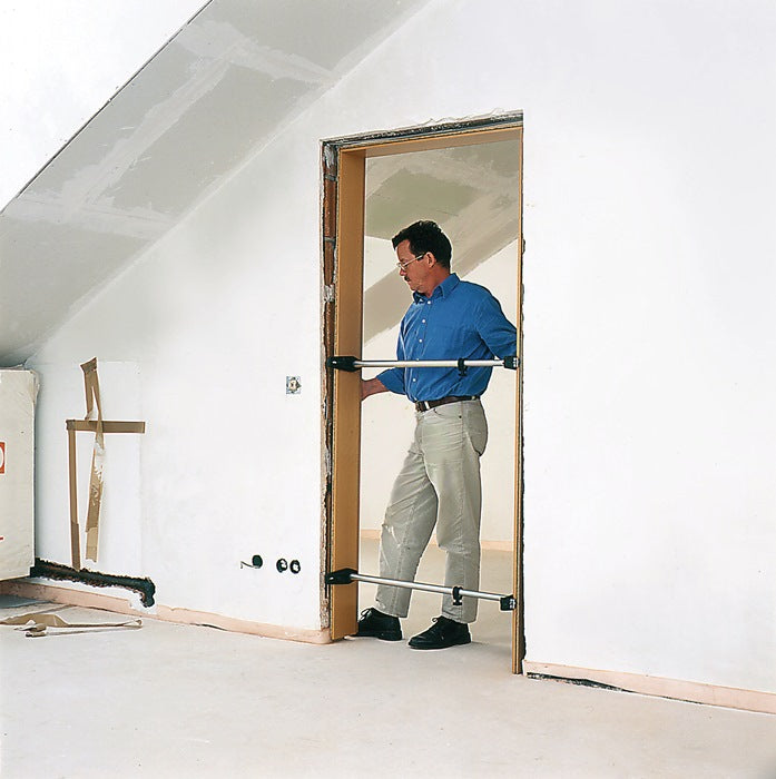 tube rond télescopique en aluminium avec vis de fixation pour un travail précis, fixe et soutient en douceur le dormant de porte lors du moussage du joint de maçonnerie, des pièces de serrage sur les surfaces de serrage sécurisent l'étai dans le dormant quantité de vente = 1 étai