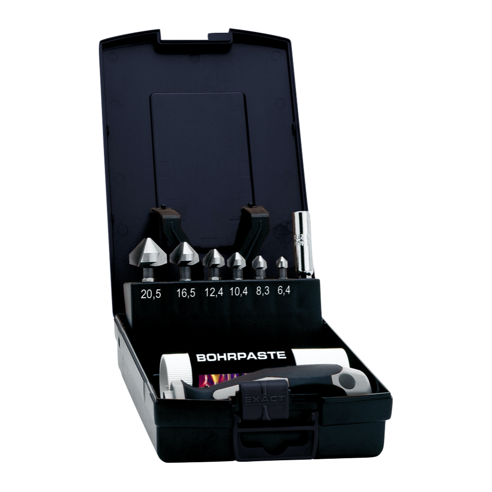 Exact Set de fraises HSS 90° DIN 335C : 6,4 - 20,5 mm + Poignée et Pâte de forage ( 05649 )
