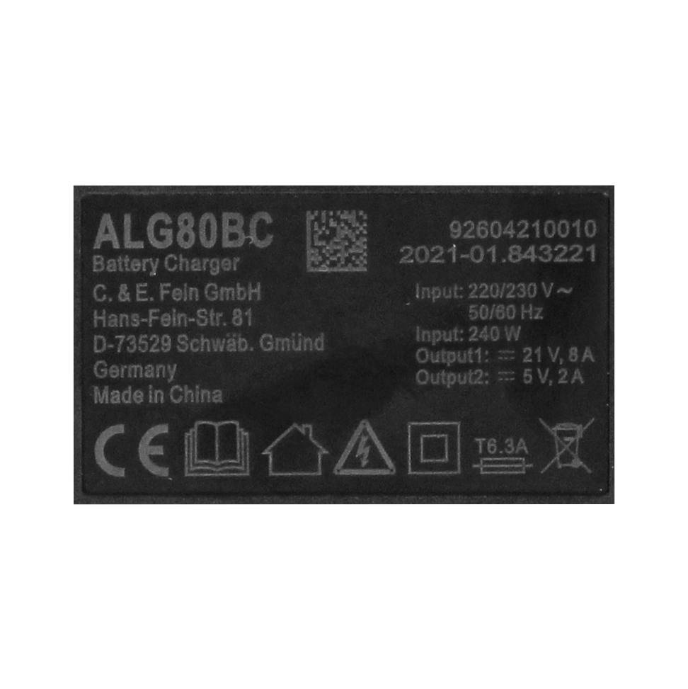 - 1x FEIN ALG 80 BC Chargeur rapide (92604210010)