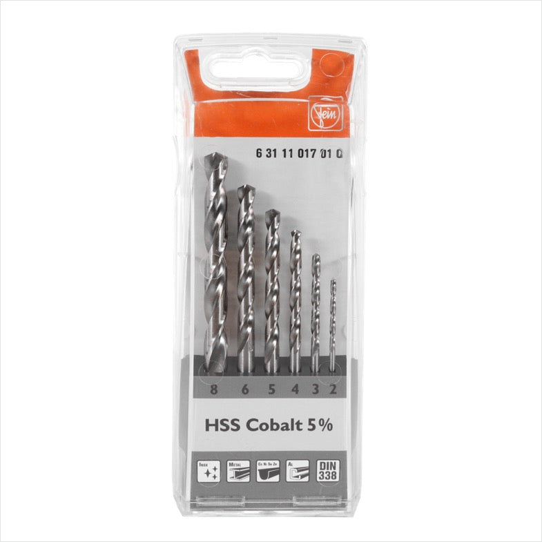 - 1x Jeu de forets hélicoïdaux FEIN HSS Cobalt 5% 2-8 mm 6 pièces (63111017010)