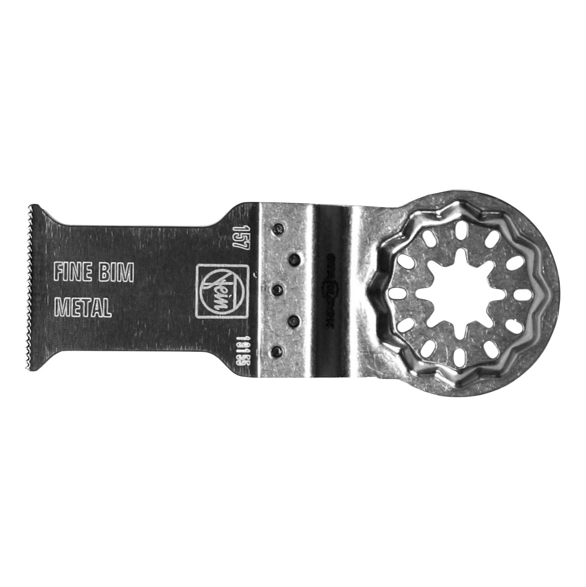 La lame de scie plongeante bi-métal E-Cut FINE de Fein est dotée d'une denture fine et convient parfaitement pour les tôles de 2 mm d'épaisseur maximum, les profilés en aluminium et les tubes en cuivre. Elle peut également être utilisée pour travailler et découper des plastiques durs. Cette lame permet d'obtenir des coupes précises et contrôlées avec une ligne de coupe particulièrement fine. De plus, grâce à la fixation universelle Starlock, elle peut être utilisée avec les outils multifonctions les plus courants et être remplacée rapidement.