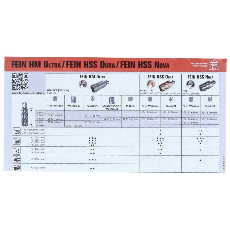 FEIN HSS Carotteuse Ultra 50 jeu d'accessoires - 8 pièces. ( 63134999063 ) 3/4" Weldon 12 - 22 mm
