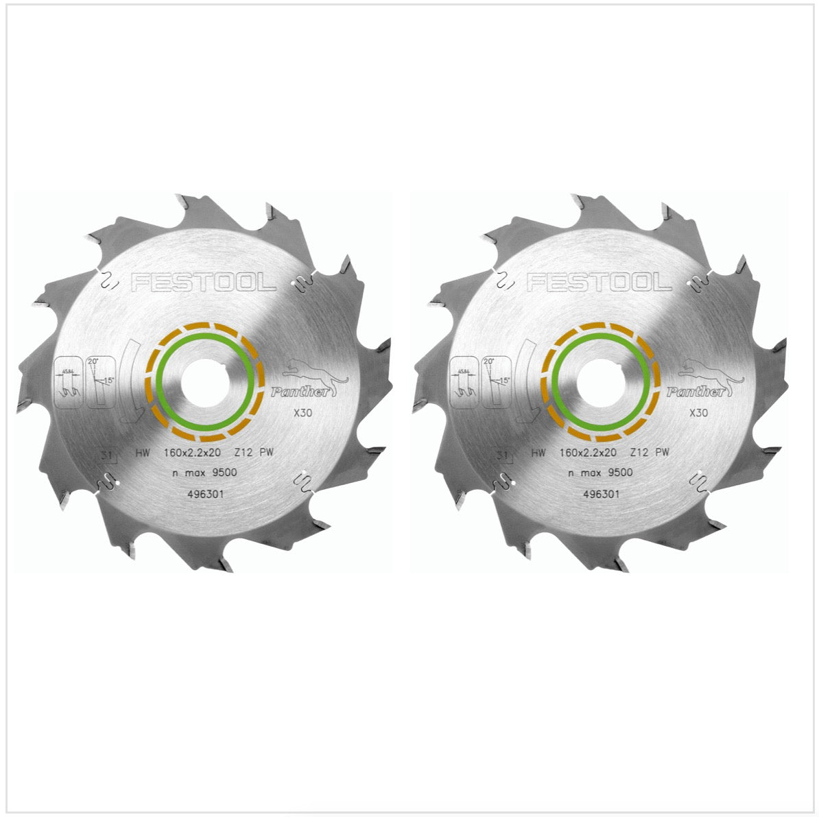 Festool 2x Panther Lames de scie circulaire HW 160x2,2x20 PW12 160 mm 12 Dents ( 2x 496301 )