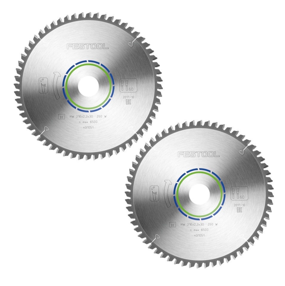 - 2x Festool ALUMINIUM/PLASTICS HW 216x2,3x30 W60 Lames de scie circulaire, 216 mm, 60 dents (491051)
