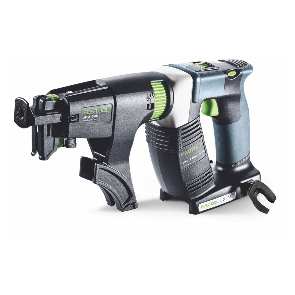 La visseuse de chantier sans fil Festool DWC 18-4500 avec adaptateur de magasin est parfaitement adaptée aux travaux de vissage dans le domaine de la construction sèche. Grâce à sa vitesse de rotation très élevée, les vissages en série sont possibles en un temps record, qu'il s'agisse d'une sous-construction en métal ou en bois. La visseuse de chantier sans fil fonctionne avec un moteur EC-TEC sans balais, qui se distingue par une longue durée de vie et un rendement très élevé. L'arrêt électronique n'est pas seulement particulièrement précis, ce qui permet un réglage exact de la profondeur de vissage, mais il est également conçu sans usure et donc très durable. Le chargeur du DWC 18-4500 peut être retiré en quelques secondes sans outil, ce qui permet à la visseuse de chantier sans fil d'être prête en quelques secondes pour toutes les tâches.