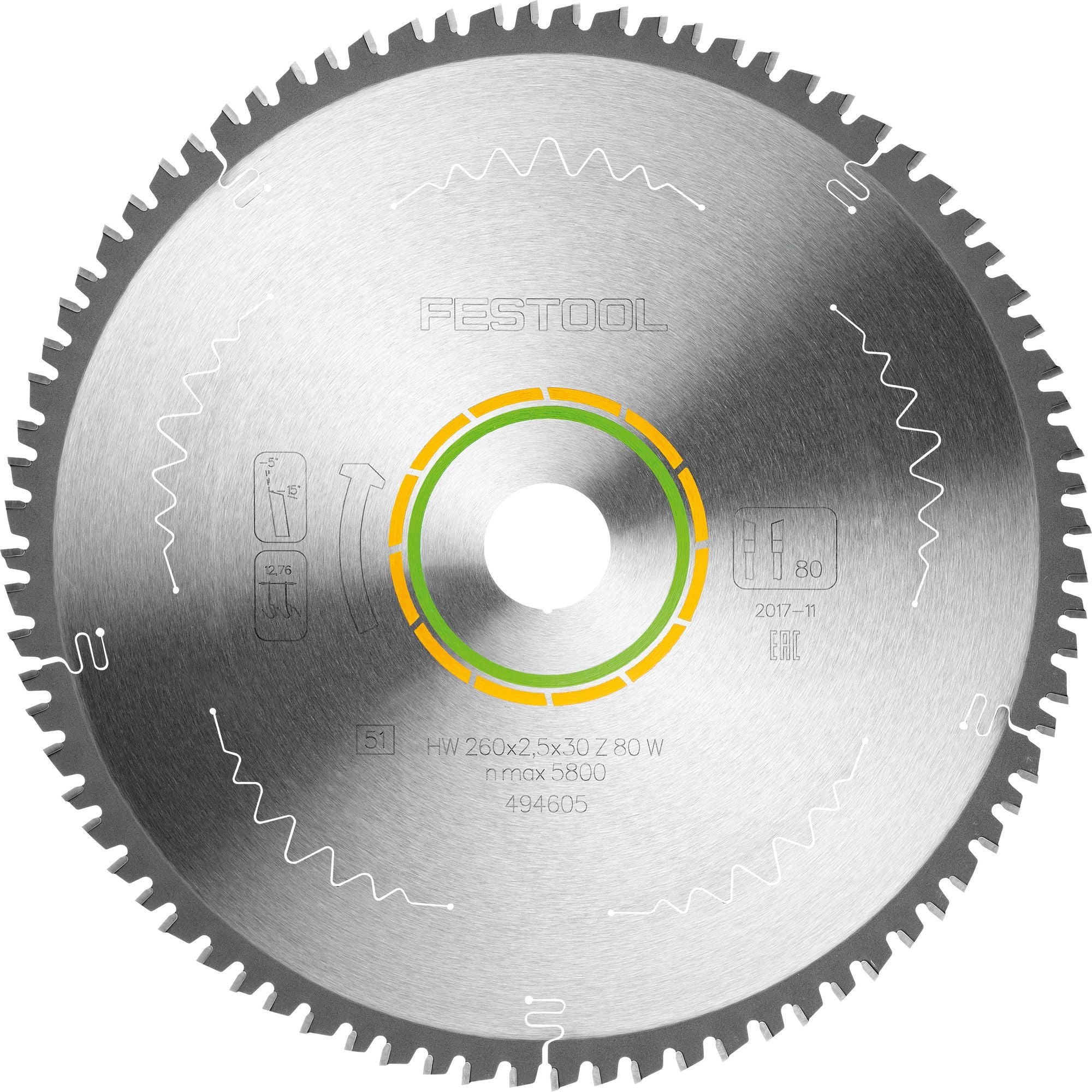 Lame de scie circulaire Festool HW 260x2,5x30 W80 WOOD FINE CUT (494605) pour KS 120, KS 88
