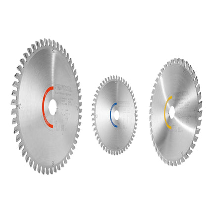 Le set de lames de scie circulaire Festool KSB-SORT/3 W/L/A 168x1,8 est l'équipement de base parfait pour les travaux de sciage polyvalents avec des matériaux changeants. Ce set multi-matériaux contient trois lames de scie circulaire de haute qualité pour des coupes précises dans le bois, les stratifiés, le HPL, l'aluminium et le plastique. Grâce aux catégories WOOD FINE CUT, LAMINATE/HPL et ALUMINIUM/PLASTICS, tu as toujours la lame de scie adaptée sous la main, que ce soit pour des coupes fines dans des panneaux plaqués, des stratifiés ou des applications robustes avec des métaux non ferreux et des plastiques renforcés de fibres. Les robustes dents en métal dur assurent une longue durée de vie et une qualité de coupe élevée et constante, tandis que le code couleur Festool permet une identification rapide. Idéal pour les scies TS 60 K, TSV 60 K et CSC SYS 50, ce set offre une efficacité et une précision maximales pour les matériaux les plus divers - parfait pour les professionnels et les artisans exigeants !