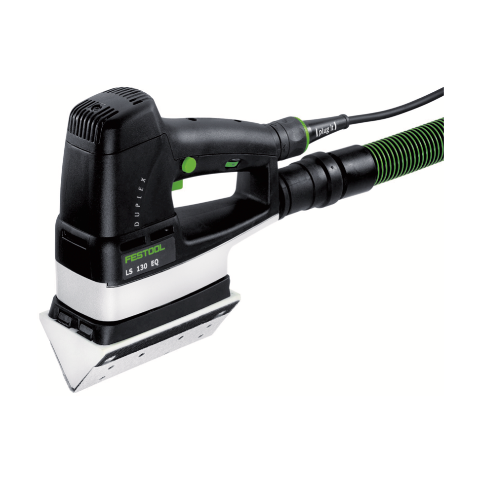 Avec la ponceuse linéaire Festool LS 130 EQ-Plus DUPLEX, tous les travaux de ponçage sont possibles sans aucun problème. Qu'il s'agisse du meulage de profilés, du traitement de mains courantes ou du meulage de plis, les domaines d'application sont variés. Le mouvement de meulage linéaire du LS 130 est basé sur le mouvement de la main humaine, ce qui permet d'obtenir le même résultat plus rapidement et plus efficacement. Le sabot de ponçage peut être changé en quelques secondes sans outils. De plus, la conception à faible usure promet une longue durée de vie et beaucoup de plaisir avec la ponceuse linéaire. Grâce au système Plug It de Festool, l'appareil peut être changé rapidement. Au lieu de débrancher l'appareil de la prise, vous pouvez simplement connecter la fiche à une autre machine Festool. Festool est un fabricant haut de gamme d'outils électriques. L'entreprise se caractérise par une large gamme d'appareils et une haute qualité.