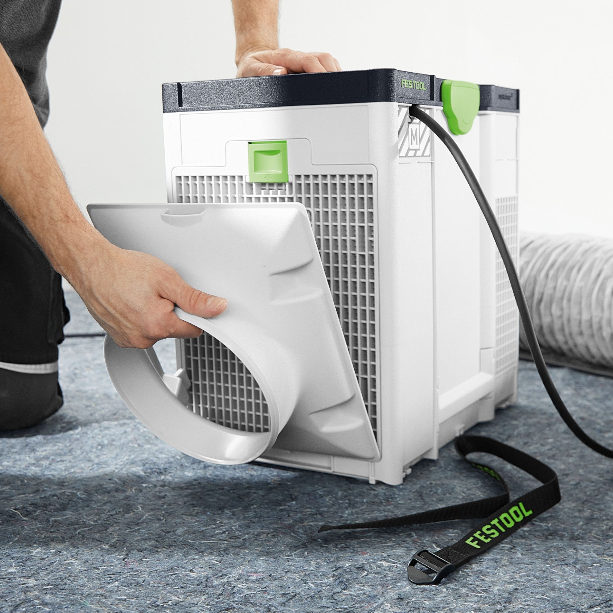 Le tuyau d'arrivée d'air Festool LS-SYS-AIR D200x6m est la solution idéale pour améliorer la qualité de l'air et minimiser la propagation de la poussière lors de travaux générant de la poussière dans des locaux habités. Ce tuyau flexible de 6 mètres de long permet de préserver les pièces environnantes de la poussière, en particulier dans les zones habitées où la protection contre la poussière revêt une grande importance. En l'intégrant dans un mur anti-poussière, la poussière est dirigée de manière ciblée hors de la zone de travail par le purificateur d'air, de sorte qu'aucune particule de poussière ne pénètre dans les pièces voisines. Cette méthode protège à la fois la santé des habitants et les dépenses de nettoyage, car la poussière reste là où elle est produite. Le tuyau se raccorde facilement et rapidement à l'épurateur d'air de chantier SYS-AIR, ce qui garantit un captage efficace des poussières. Grâce à sa flexibilité, le tuyau permet une capture ponctuelle précise des poussières, même dans les zones difficiles d'accès ou dans les petites pièces. Le tuyau peut ainsi être positionné directement à la source de la poussière afin de réduire la propagation de la poussière et de créer un environnement de travail propre. Le Systainer pour accessoires offre un espace de rangement pratique dans lequel tous les composants du tuyau peuvent être rangés en toute sécurité et bien protégés. Ainsi, l'environnement de travail reste toujours bien rangé et tous les éléments sont toujours à portée de main.