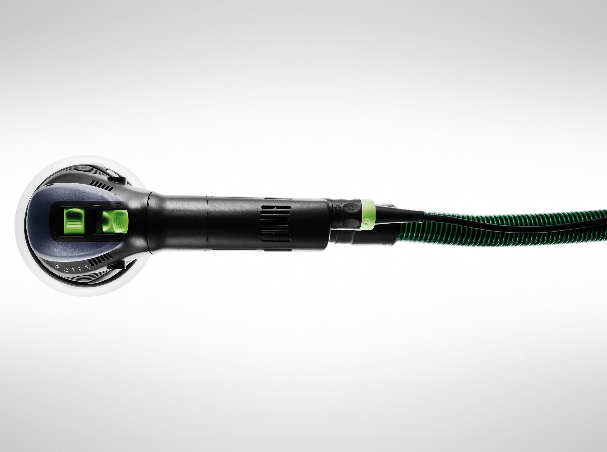La ponceuse excentrique à engrenages ROTEX Festool RO 150 FEQ (575066) réunit trois appareils en un : ponçage grossier, ponçage fin et polissage. Cet outil polyvalent offre une forte capacité d'enlèvement de matière pour le dégrossissage, des résultats très fins pour le ponçage fin et une finition parfaite pour le polissage. Grâce au changement de plateau FastFix, les plateaux de ponçage peuvent être remplacés rapidement et sans outil. Le mouvement excentrique garantit des surfaces de haute qualité sans stries, tandis que le Protector permet de poncer au plus près des bords. Les positions ergonomiques des poignées garantissent un travail confortable et le chemin de came ROTEX garantit un enlèvement de matière particulièrement important. Idéal pour des applications telles que le ponçage de vieilles peintures, le traitement de matériaux en bois, le ponçage de marches d'escalier et le polissage de surfaces sans hologrammes. Combinée avec l'abrasif Granat et un aspirateur mobile, la ROTEX permet d'économiser à la fois des coûts et du temps.