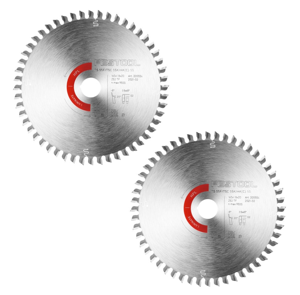 Festool stratifié/HPL HW 160 x 1,8 x 20 TF52 Lames de scie circulaire - 2x pièces (205554) pour scies plongeantes TS 55 F, TSC 55 K & scies circulaires portatives HK 55, HKC 55