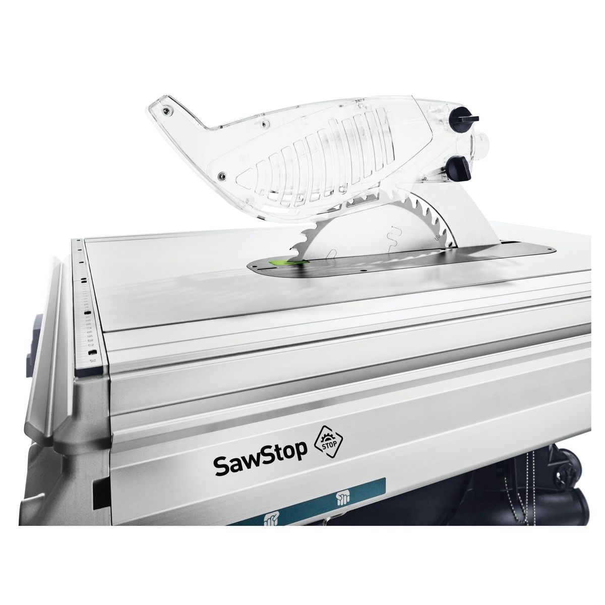 La scie circulaire de table TKS 80 EBS de la marque Festool offre un maximum de sécurité dans l'atelier. Elle est dotée de la technologie sensible SawStop activable et désactivable au choix qui garantit une sécurité optimale lors du sciage de métaux isolants. Lorsque la scie entre en contact avec la peau, elle s'arrête immédiatement et disparaît dans le plan de travail. Elle est en plus équipée d'une cartouche rapidement remplaçable qui libère un ressort comprimé et propulse un bloc d'aluminium dans la lame de scie. On recense chaque année environ 4000 blessures dues à l'utilisation d'une scie circulaire. Cela correspond à 16 blessures par jour de travail mais contrairement aux autres scies, la TKS 80 EBS offre une assurance en cas d'accident, donnant par ce chiffre la possibilité aux utilisateurs de faire le choix idéal pour leurs travaux de sillage. Grâce à sa hauteur de coupe de 80 mm, sa longueur de travail extensible et sa butée longitudinale et angulaire, la TKS 80 EBS de Festool offre une grande flexibilité pendant le travail. De plus, son échelle angulaire avec points d'arrêt et réglage fin parfaitement adaptée aux coupes en bout et longitudinales et l'inclinaison à gauche de sa lame de scie, lui permettent de s'adapter à toutes les situations. La TKS 80 EBS de Festool permet, grâce à sa table coulissante et sa profondeur de coupe de 20 mm de réaliser sans problème des coupes en bout jusqu'à une largeur de 820 mm. Même les coupes longitudinales jusqu'à une hauteur de coupe de 80 mm et une largeur de 600 mm avec élargissement ne posent aucun problème. En outre, le manchon d'aspiration CLEANTEC garantit une vue dégagée et un travail sans poussière. Le garage à outils situé sur le côté permet de ranger les lames de scie, les cartouches et le bâton coulissant. Festool est un fabricant d'outils électriques réputé pour sa conception d'outils haut de gamme.