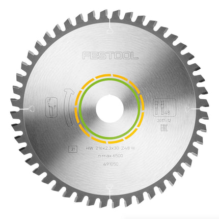 Festool W48 Lame de scie denture fine ( 491050 ) 216 x 2,3 x 30 pour Scie à onglets SYMMETRIC SYM 70
