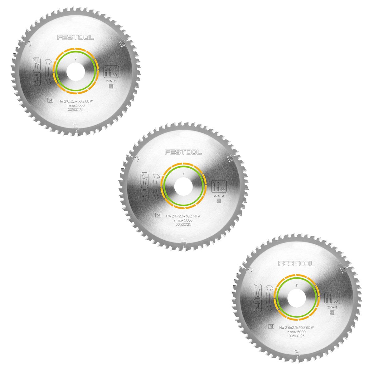 Festool WOOD FINE CUT Lame de scie circulaire denture fine, HW 216 x 2,3 x 30 mm W60, 60 dents, 3 pcs. (3x 500125)