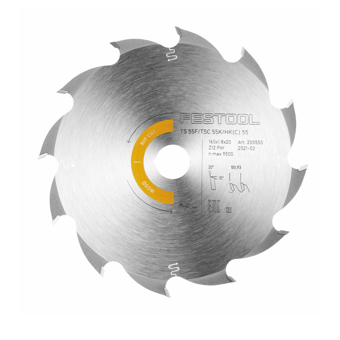 Festool Wood Rip Cut HW 160 x 1,8 x 20 mm PW12 Lame de scie circulaire (205550) pour TS 55 F, TSC 55 K & HK 55, HKC 55