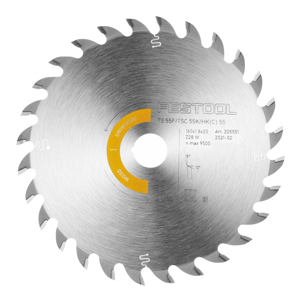 Festool Wood Universal Lame de scie circulaire HW 160 x 1,8 x 20 W28 (205551) pour TS 55 F, TSC 55 K & HK 55, HKC 55