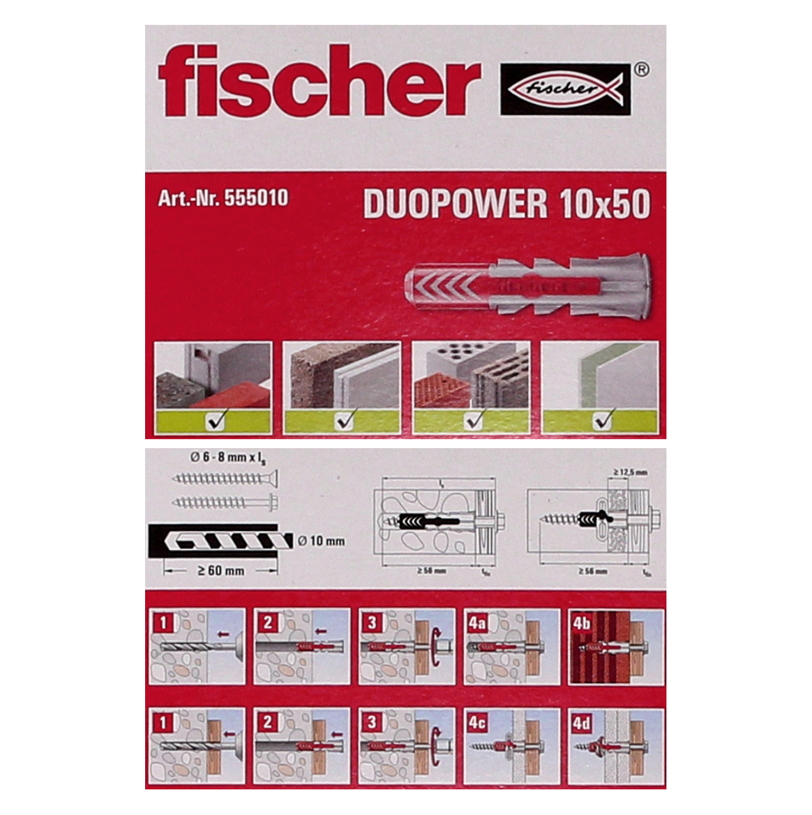 - 1000x chevilles à expansion Fischer DUOPOWER 10x50mm (20x 555010)
