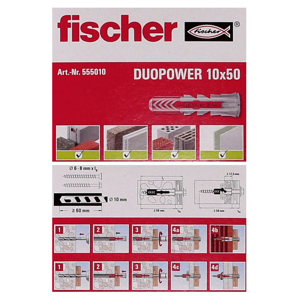 Cheville à expansion Fischer DUOPOWER 10x50mm 500 pièces (10x 555010)