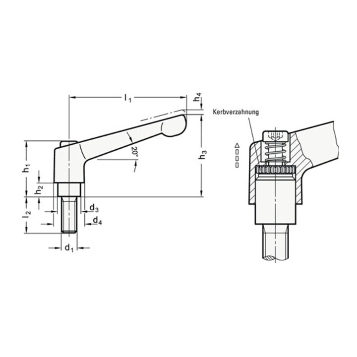GANTER Levier de serrage réglable GN 300 D. 1 M 12 mm ( 4601000488 )