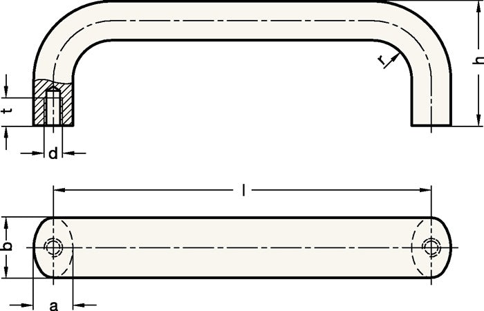Poignée avec profilé GN 565 l 120 ± 0,25 mm t min. 10 mm h 49 mm