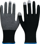 selon EN 388 - cat. II - Matière : coton / élasthanne (13gg) - avec picots antidérapants en PVC sur la paume - poignet tricoté - bouts des doigts du pouce, de l'index et du majeur compatibles avec les écrans tactiles (grâce au fil de carbone intégré) - dextérité parfaite