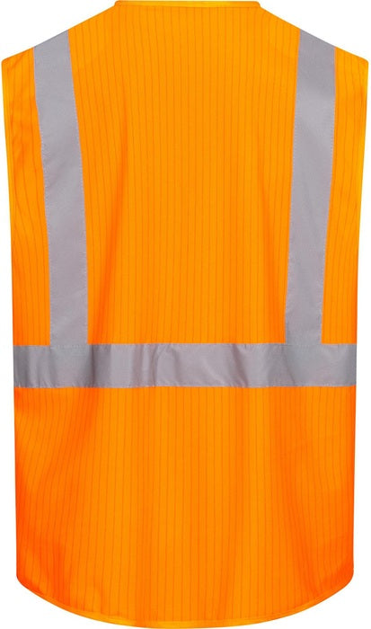EN ISO 13688/EN ISO 20471/EN 1149 - 100% polyester - 120 g/m2 - avec fil de carbone - deux bandes réfléchissantes sur le pourtour - avec bandes réfléchissantes sur les épaules pour une très bonne visibilité - avec fermeture éclair - anneau en D - deux poches latérales - poche pour smartphone, stylo et carte d'identité sur la poitrine, passant pratique pour par ex. les téléphones portables ou les lampes de poche