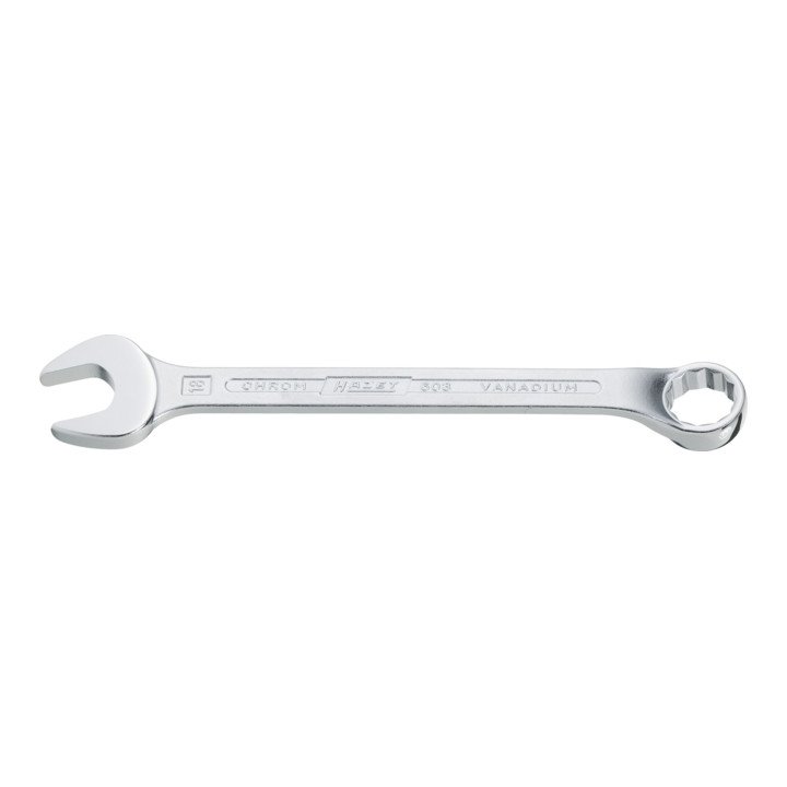 Acier CV - chromé - avec ouverture de clé identique - côté anneau coudé à 10°, position de la mâchoire à 15° - ouverture de clé de 5,5 à 9 mm côté anneau avec hexagone, à partir de l'ouverture de clé de 10 mm côté anneau avec double hexagone DIN 3113 forme B / ISO 3318 / ISO 7738
