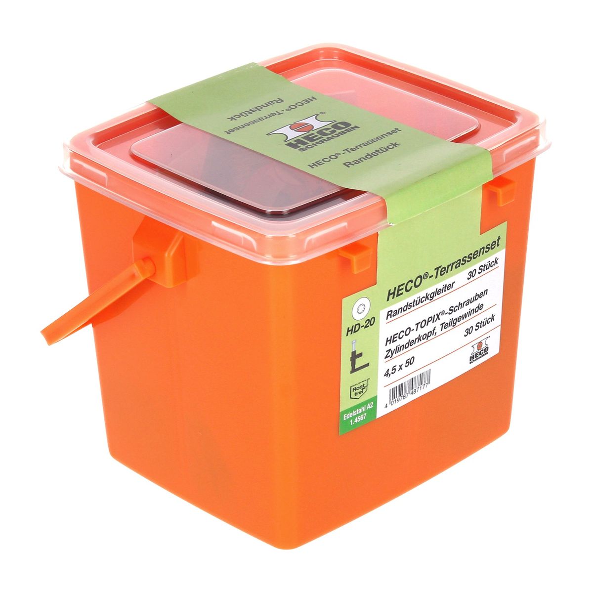HECO Set de fixations pour terrasse, 30 pcs + Vis pour plancher HECO TOPIX 4,5 x 50 mm HD 20 + Coffret ( 48717 )