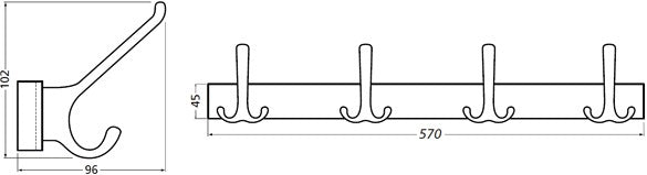 Hermeta Barre à crochets pour chapeaux 0822-0824 ( 3000283320 ) 4 crochets saillie 96 mm hauteur 102 mm