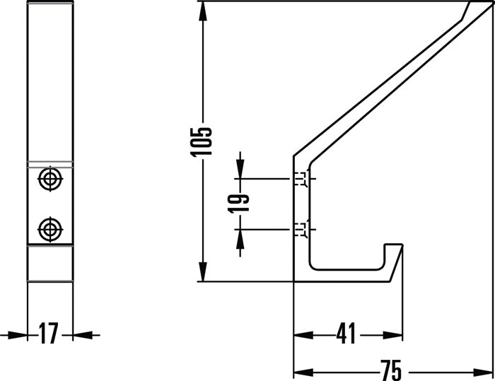 Crochet simple - profilé aluminium anodisé couleur argent - 2 trous de fixation