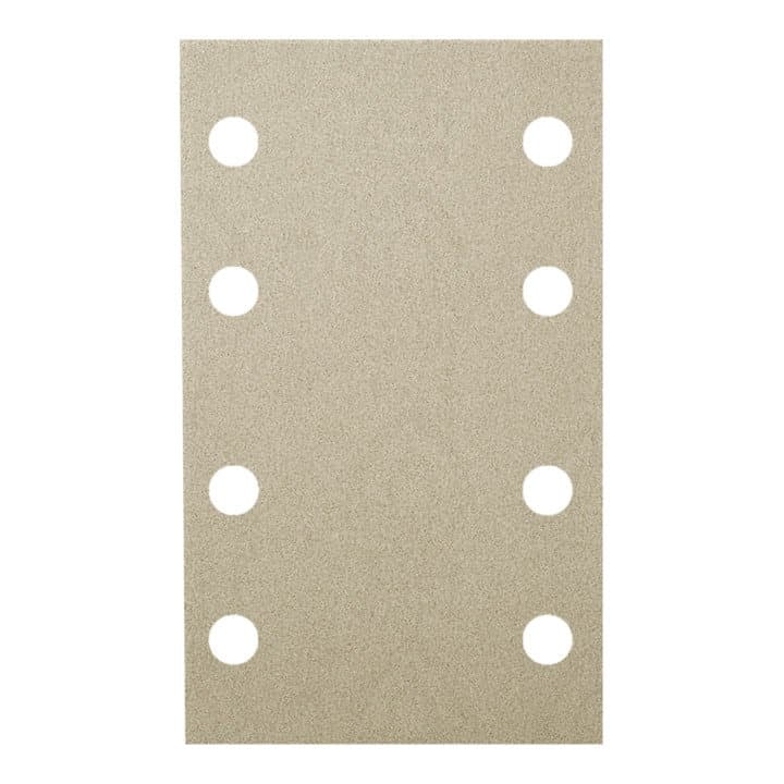 corindon - 80 x 133 mm - capacité de ponçage et d'enlèvement de matière accrue grâce à un grain abrasif spécial en oxyde d'aluminium traité thermiquement - encrassement réduit grâce à des substances actives abrasives dans le vernis de finition et à une dispersion semi-ouverte des grains - grande flexibilité associée à une bonne stabilité et résistance à la déchirure grâce à un support en papier imprégné de latex - auto-adhésif