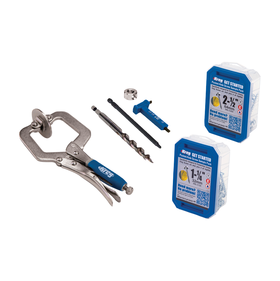 KREG Pocket Hole Jig 520 PRO Gabarit de perçage pour trous de poche (KPHJ520PRO) + Foret étagé + Embout + Vis +Serre-joint