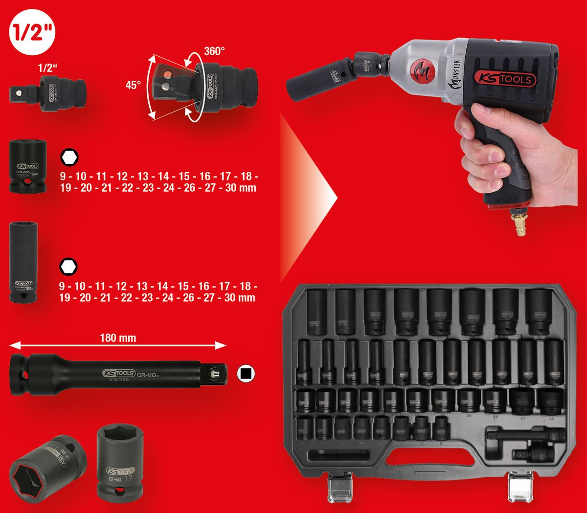 KS TOOLS 1/2' Jeu de douilles à chocs 6 pans, 40 pcs ( 515.0065 )