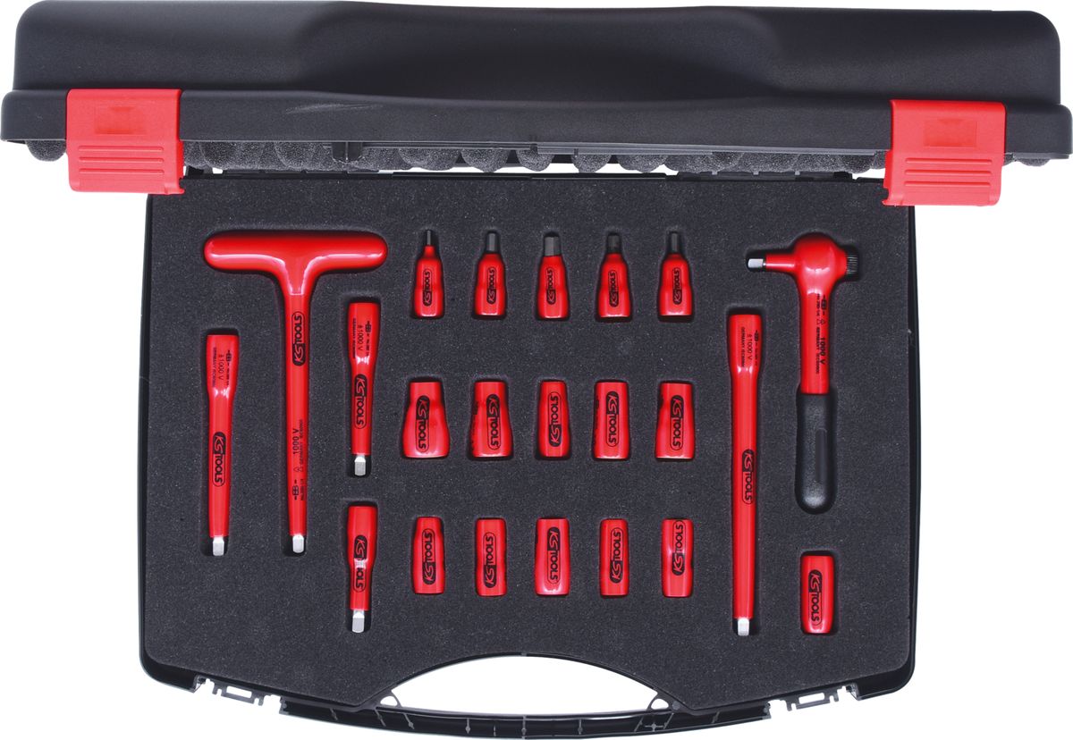 1/4' Coffret de douilles isolées, 22 pcs - Coffret de douilles avec outils isolés