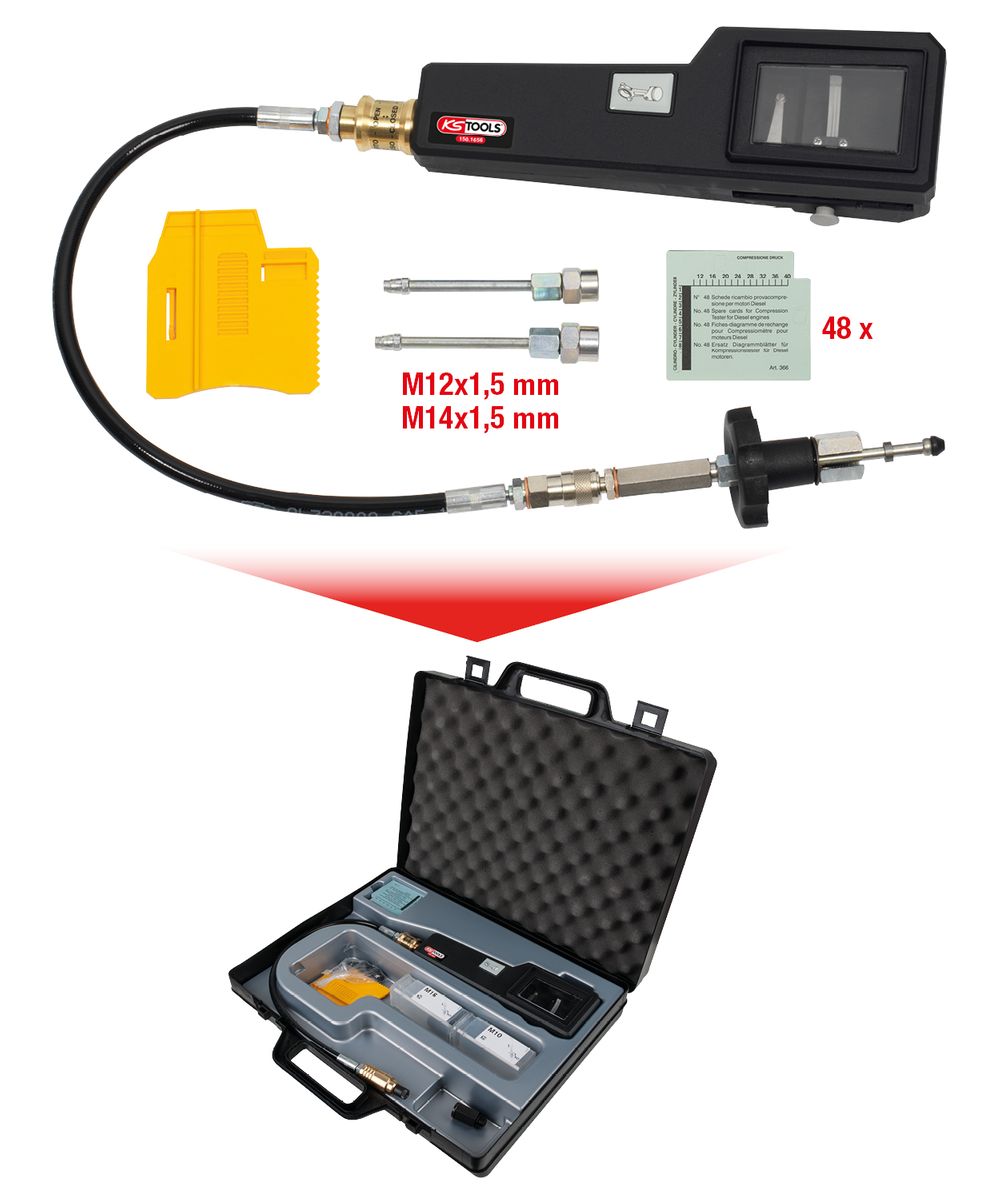 KS TOOLS Appareil de contrôle de la pression et de la compression pour moteurs diesel avec imprimante de diagramme, 53 pcs ( 150.1656 )