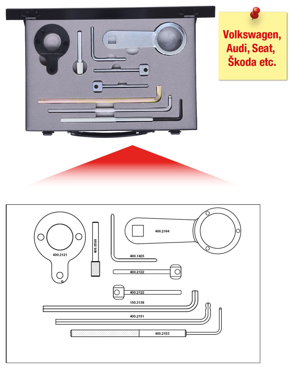 Jeu d'outils de réglage moteur pour VAG, 9 pcs, Audi, Seat, Škoda, Volkswagen - Jeu d'outils de réglage moteur pour VAG