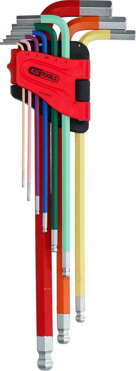 KS TOOLS Jeu de clés mâles coudées à six pans creux et tête sphérique, extra longues, 9 pcs ( 151.4420 )