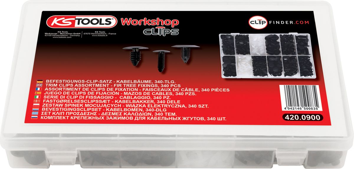 KS TOOLS Jeu de clips de fixation - faisceaux de câbles, 340 pcs ( 420.0900 )