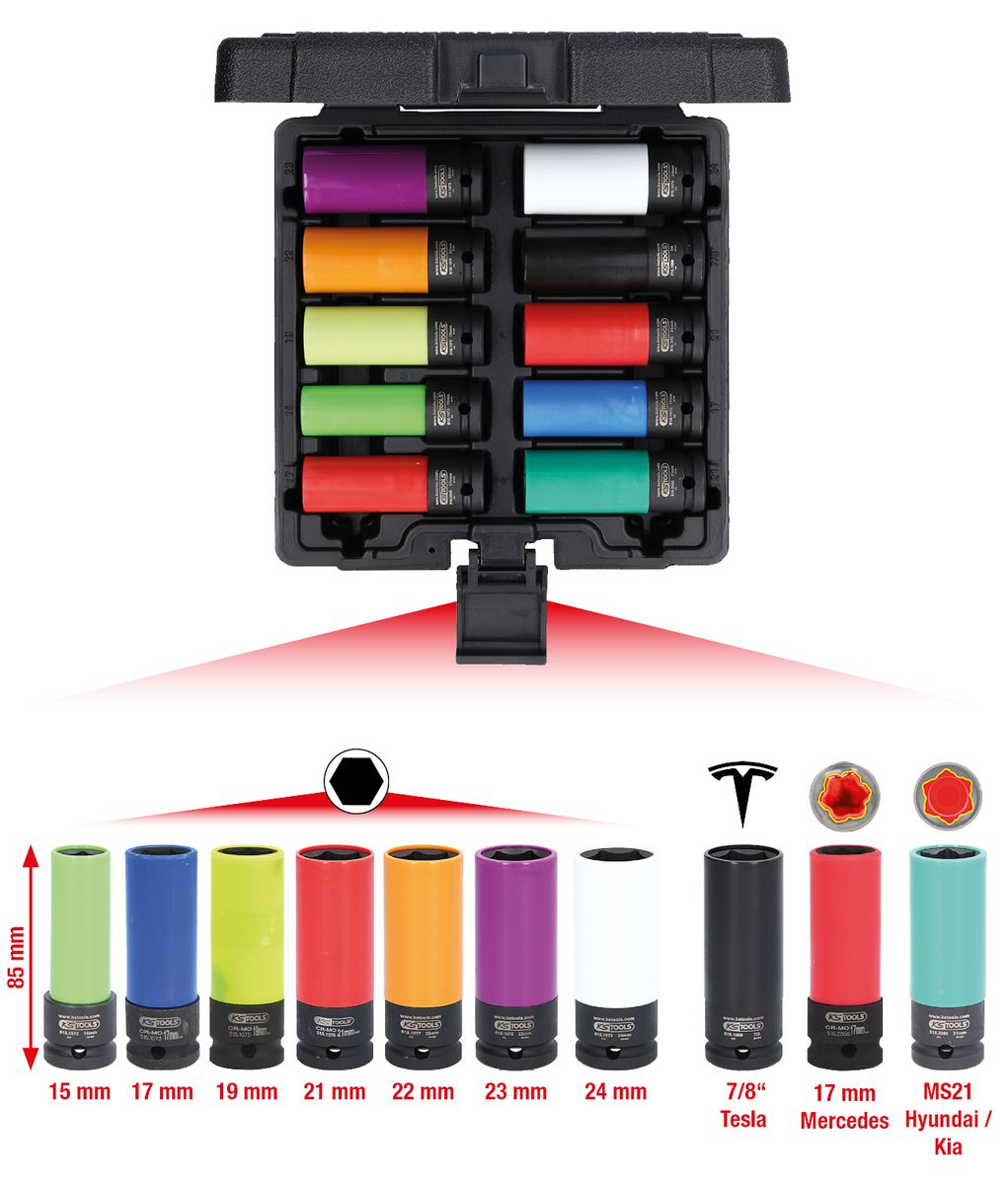 KS TOOLS Jeu de douilles à chocs 1/2' spéciales pour jantes aluminium, 10 pcs ( 515.0890 )