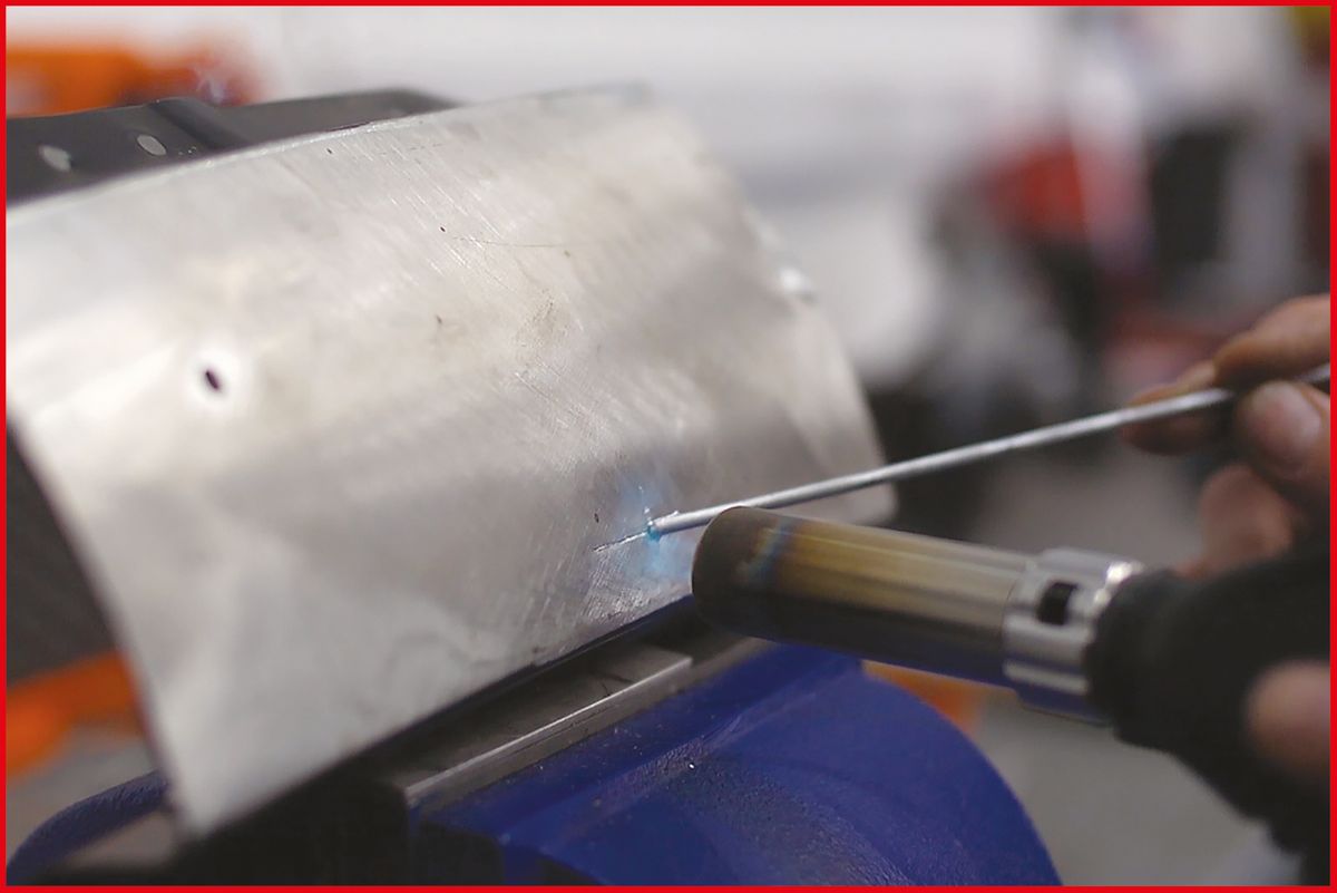 • avec brosse d'étamage et 5 tiges de réparation en aluminium